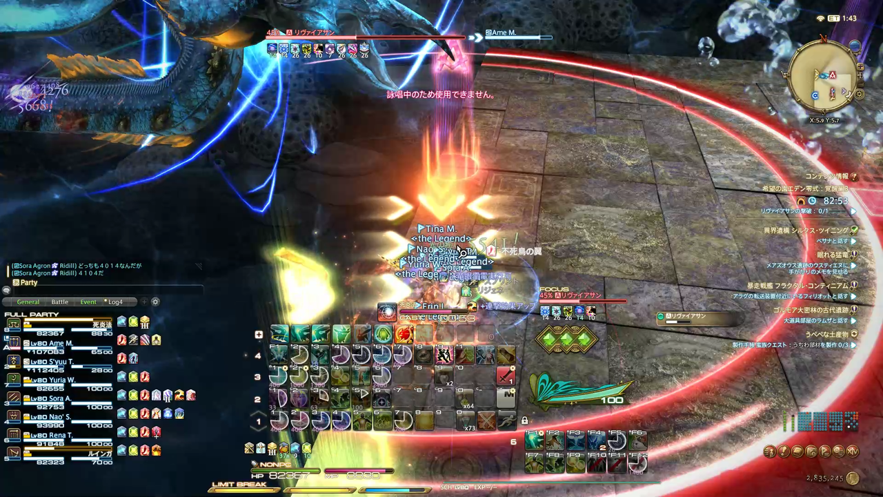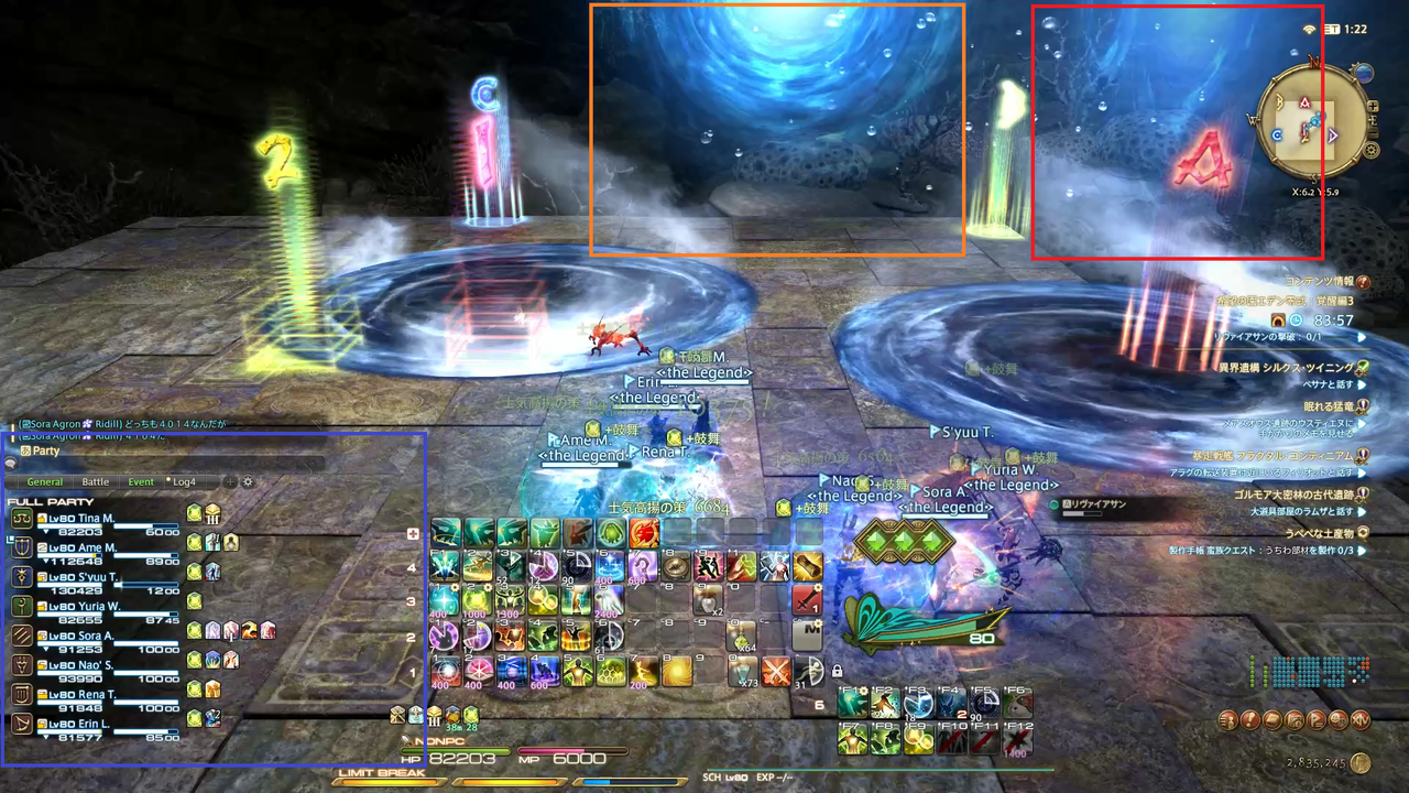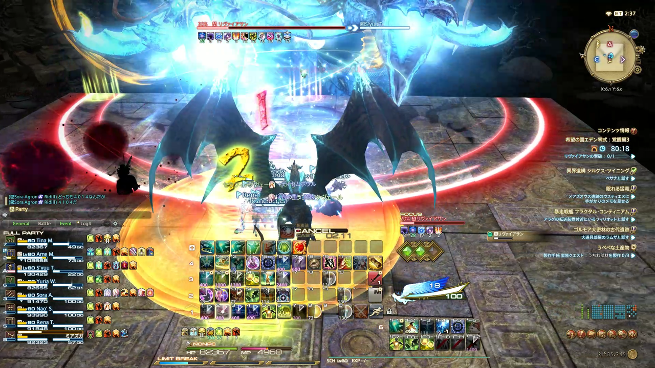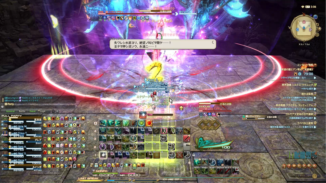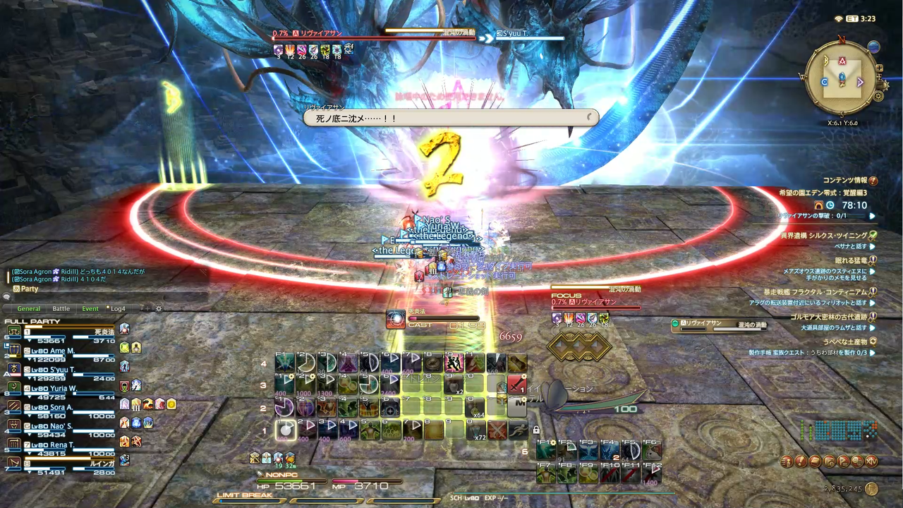 頭割り攻撃(溺没)とドーナツ範囲(渦動)が着弾