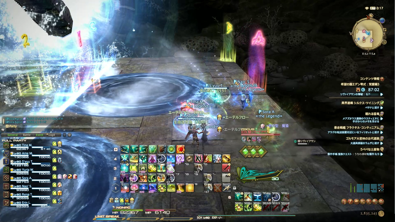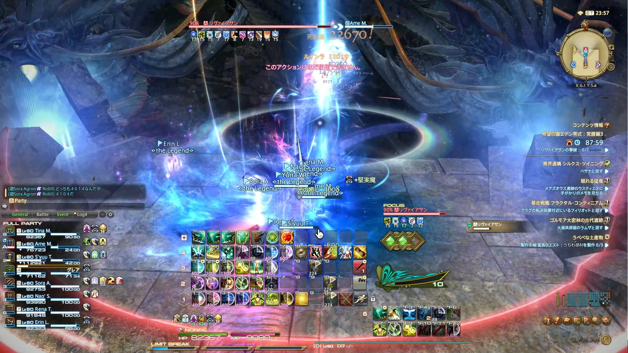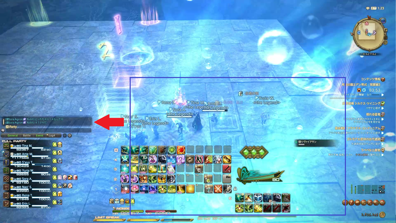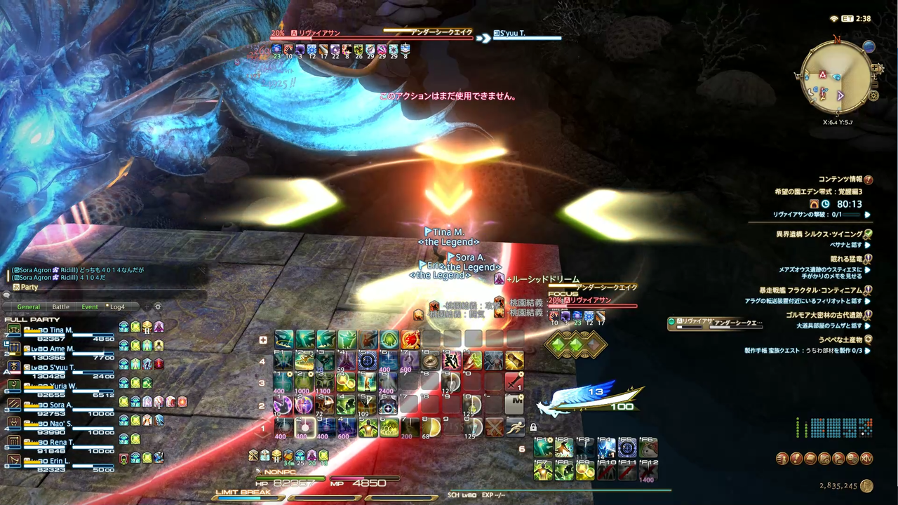 頭割り攻撃(溺没)とドーナツ範囲(渦動)が着弾