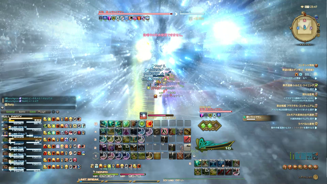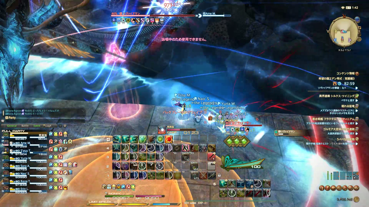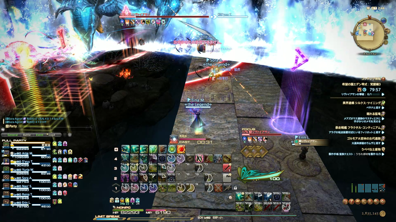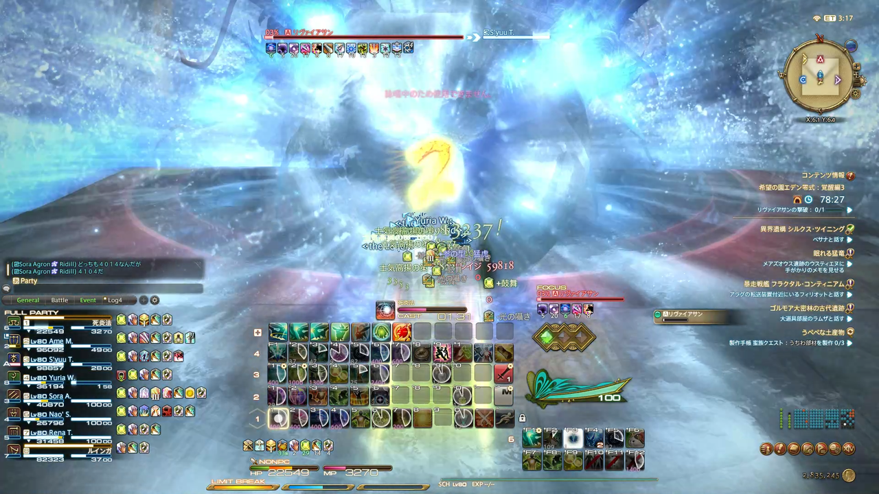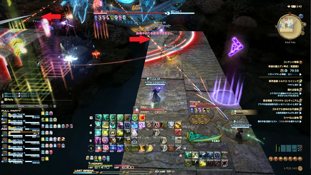 頭割り攻撃(溺没)とドーナツ範囲(渦動)が着弾