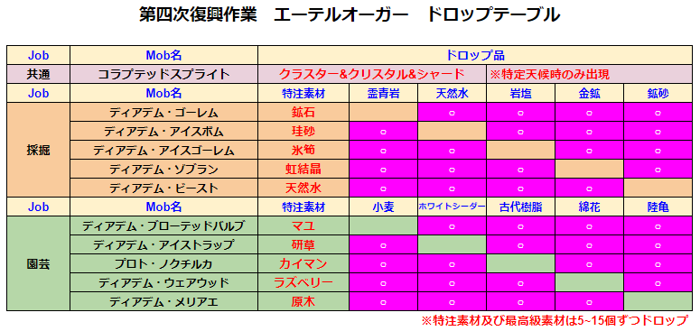 ~エーテルオーガードロップ情報(採掘&園芸限定)~