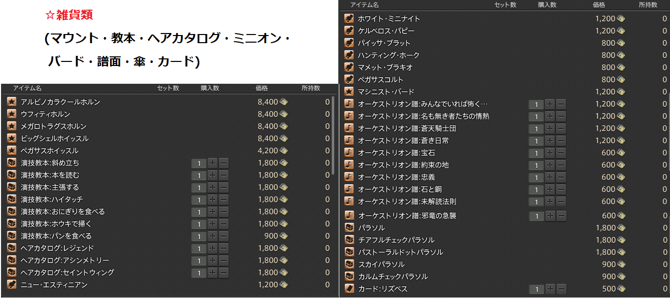 ※ギャザラー(採掘・園芸・漁師)専用コンテンツ