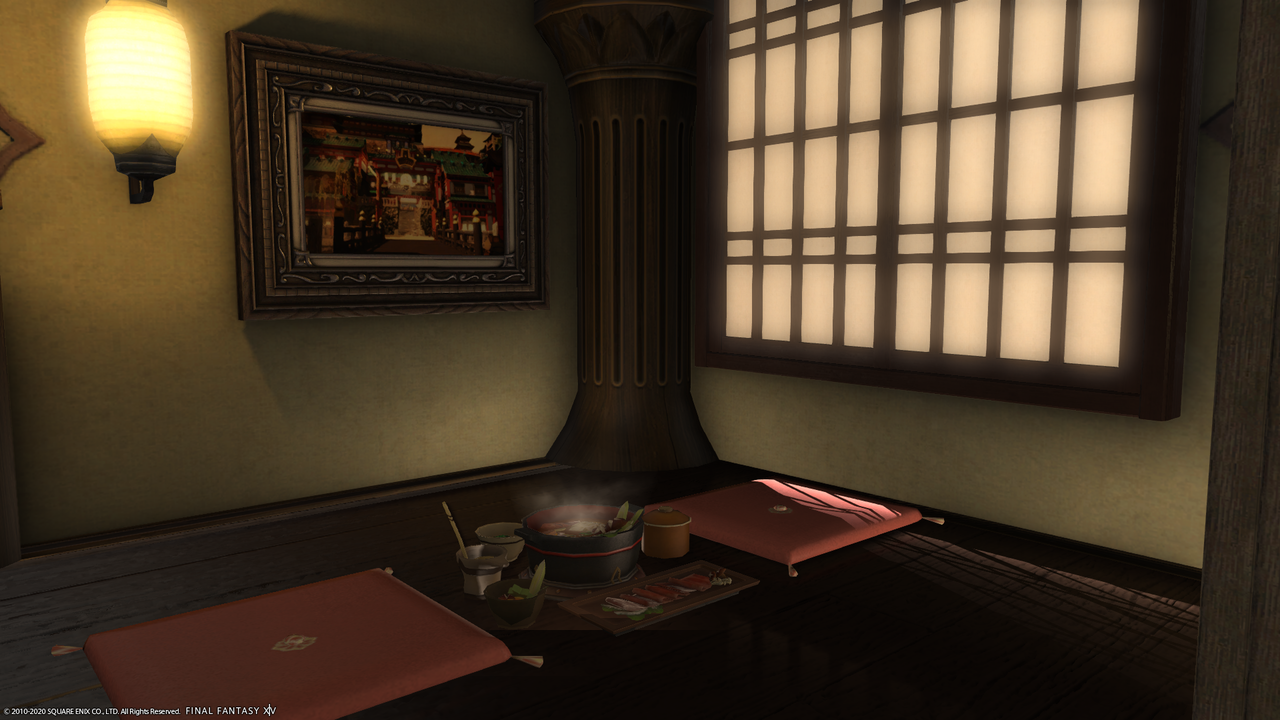 入口から和風です ララフェルがすっぽり入れそうな壺や掛け軸などがあります