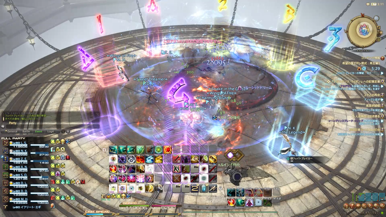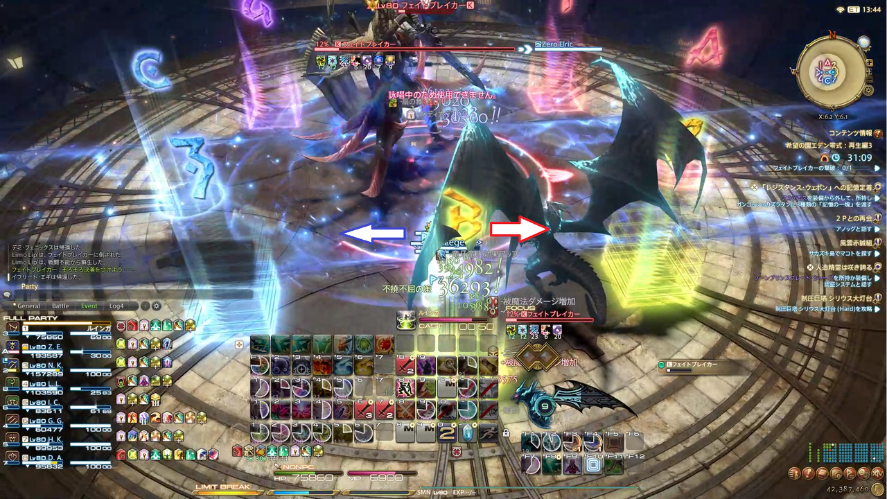 赤→対象者+マーカー付かなかったヒラDPS4人