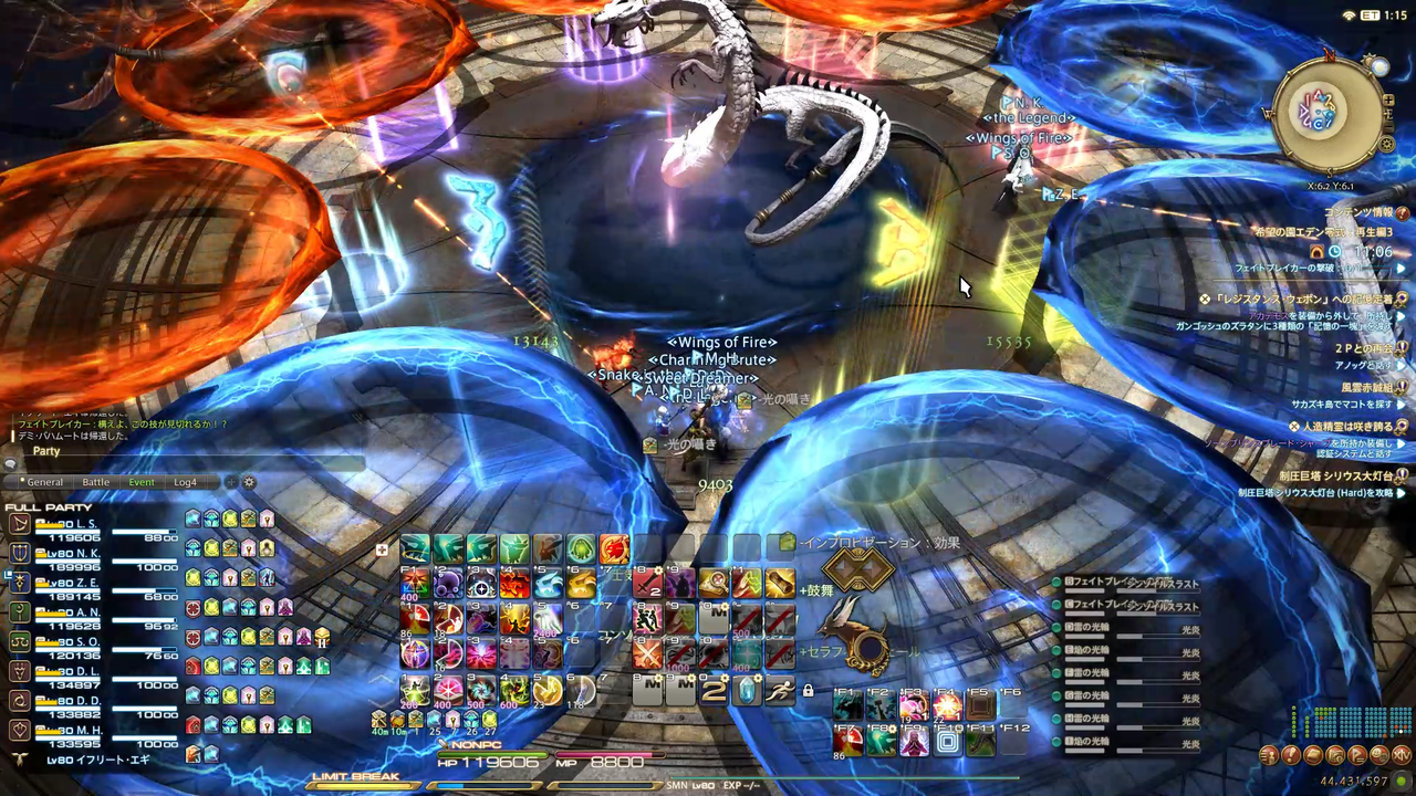 赤と青の光輪からの円範囲+中央の龍からドーナツ範囲攻撃