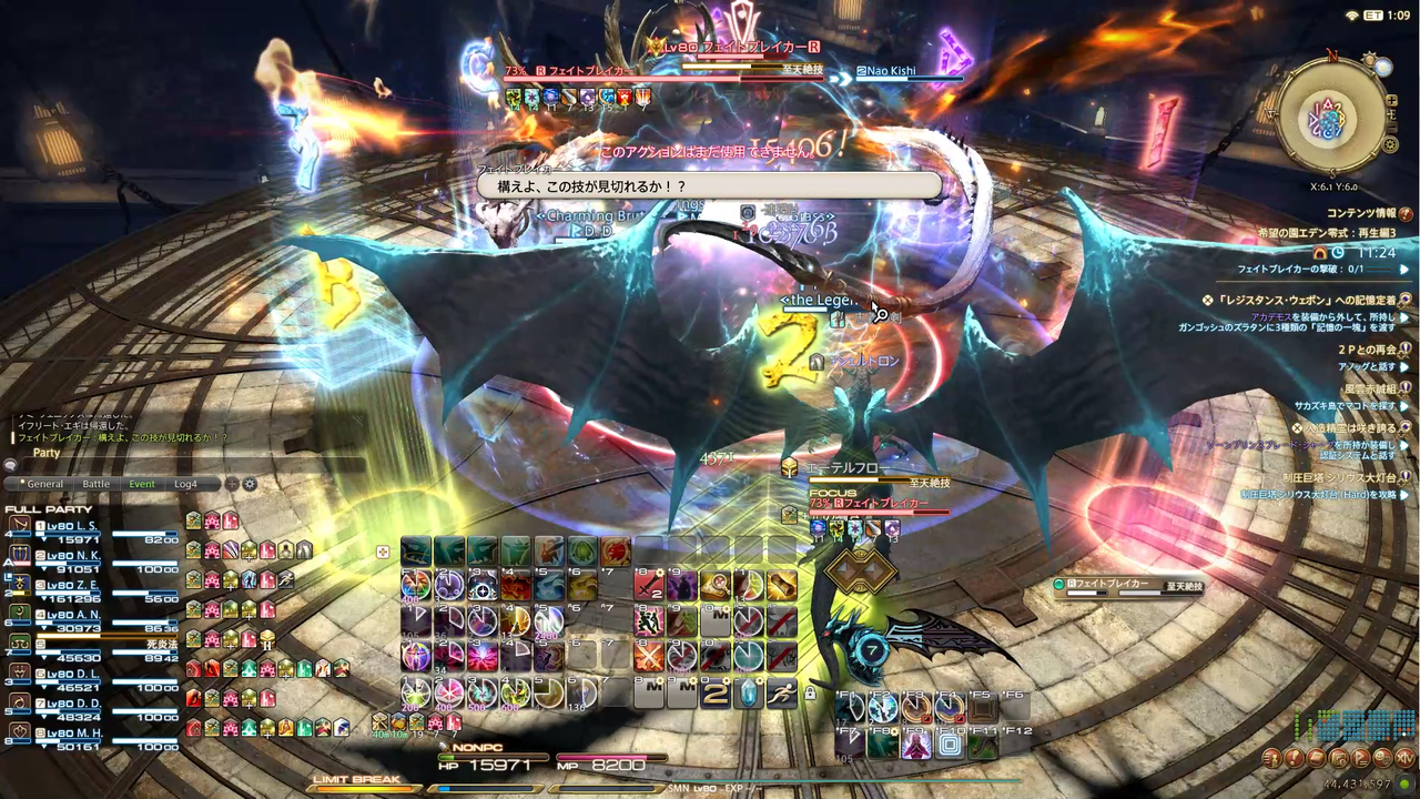 同時に中央の龍がランダム1人に向けて前方範囲攻撃を詠唱し始める