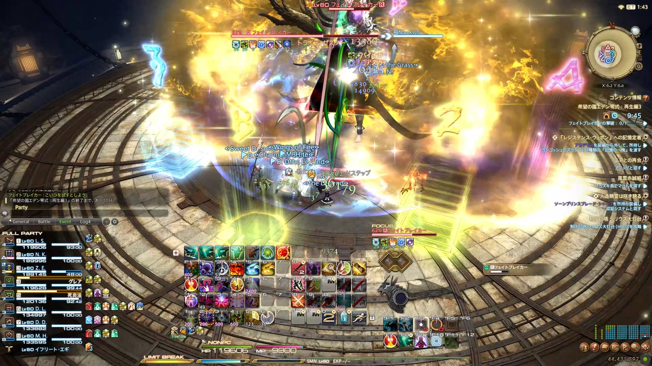 マーキング対象へ攻撃 赤ならボスの前、黄なら外周に行って1人で受ける