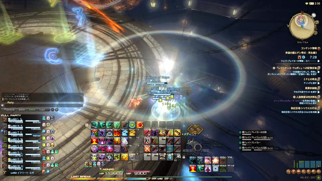 中央からのノックバック攻撃 中央に黒いAoEが出現する(入ると即死)