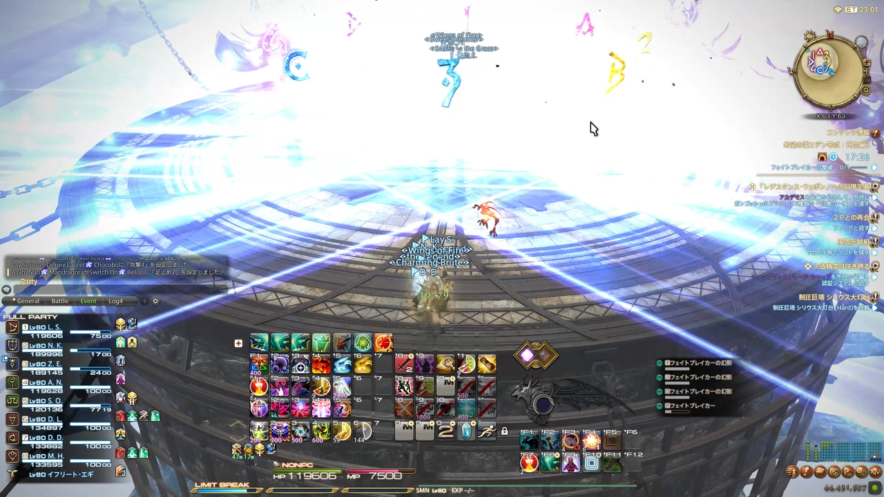 ヒラDPSから2人マーキング(外周のボスの分身から線)が付く