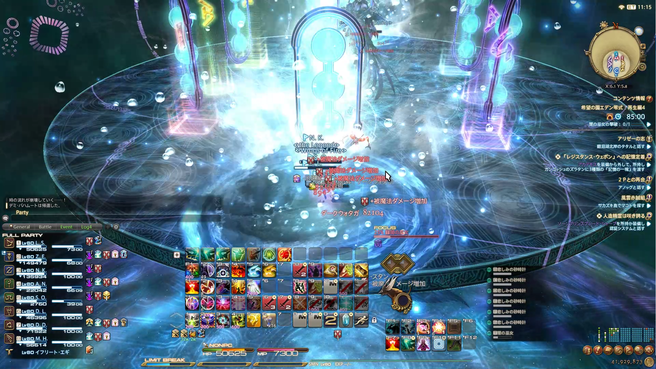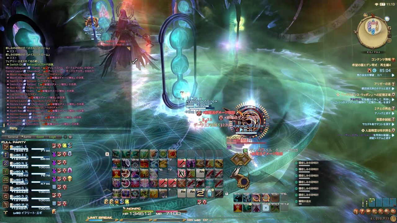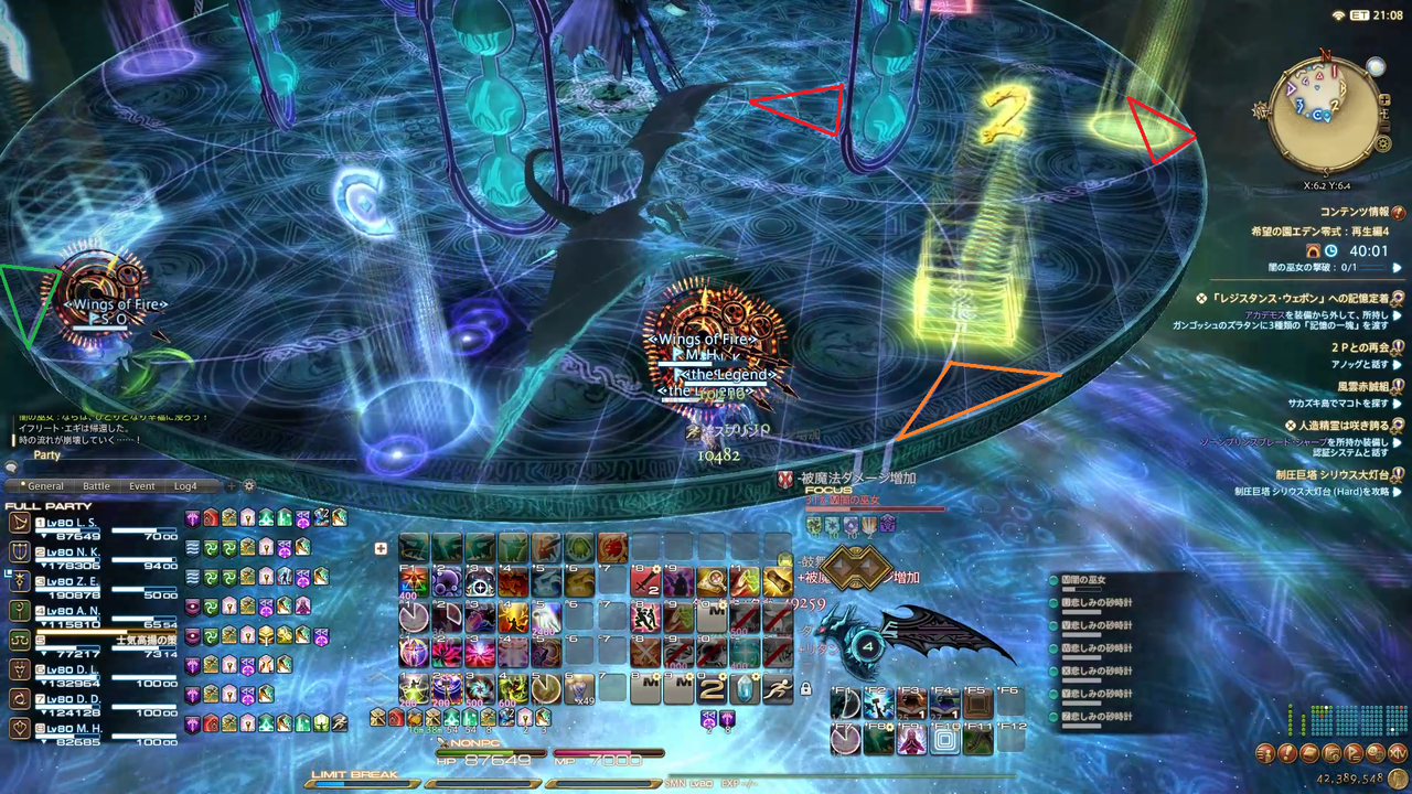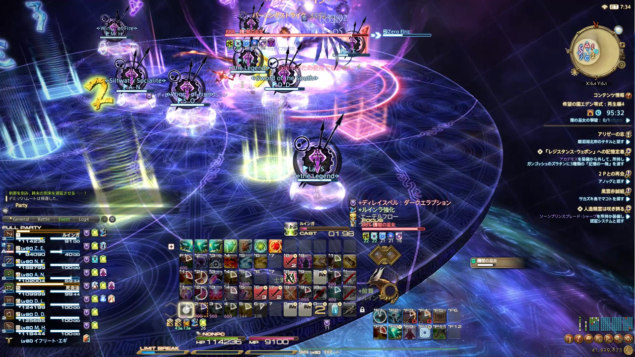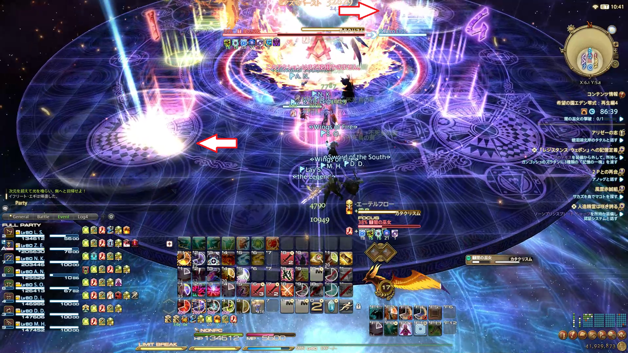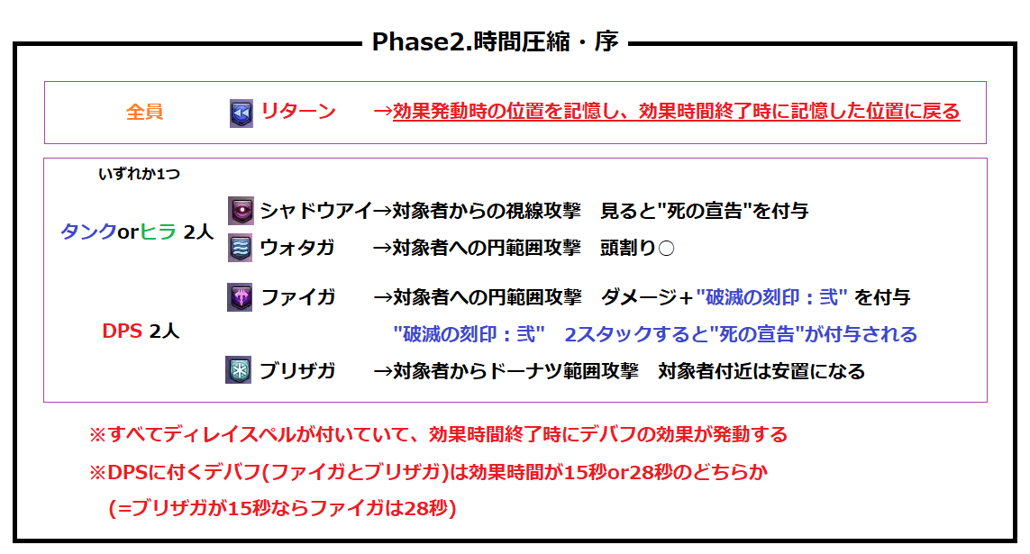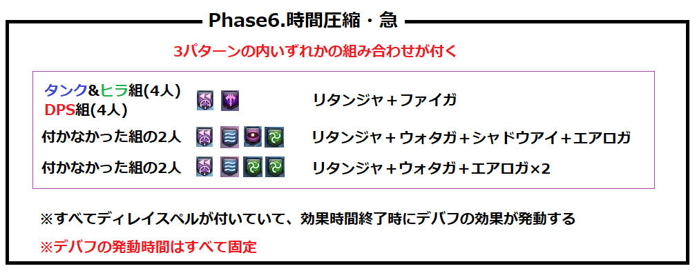 ディレイスペルが発動 エラプション→散開 ウォタガ→4:4で頭割り
