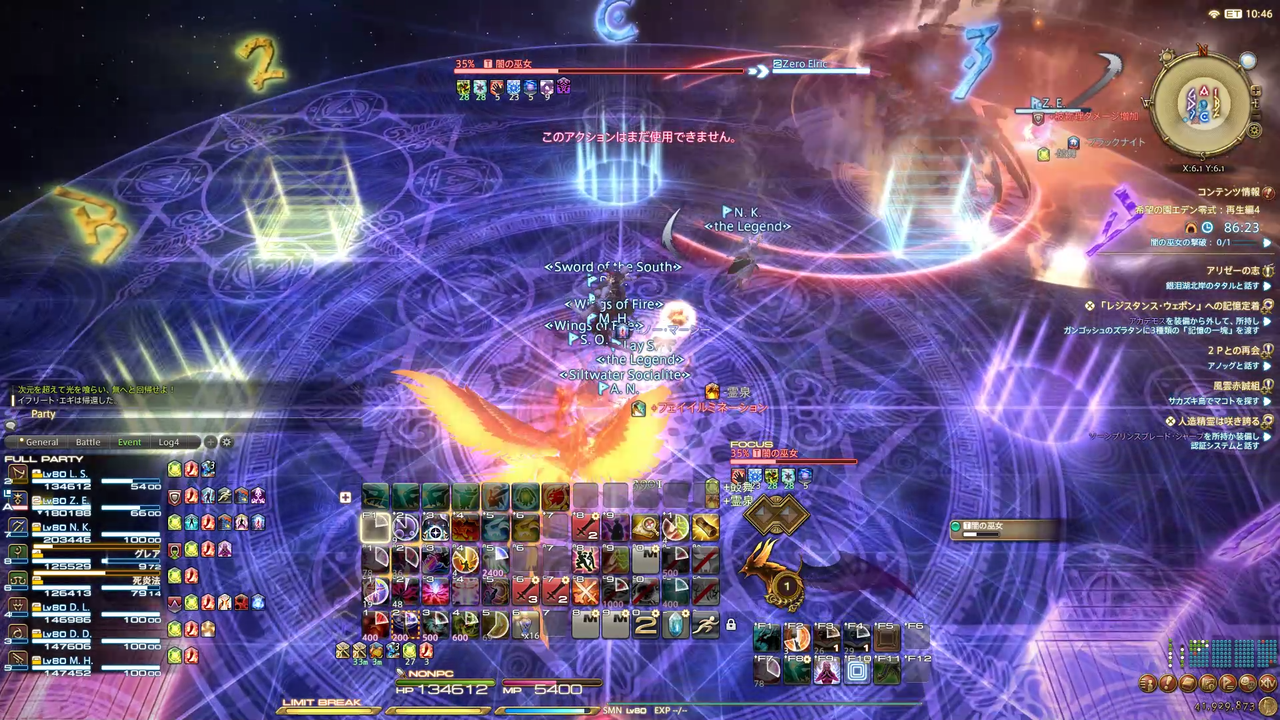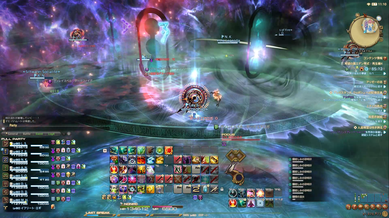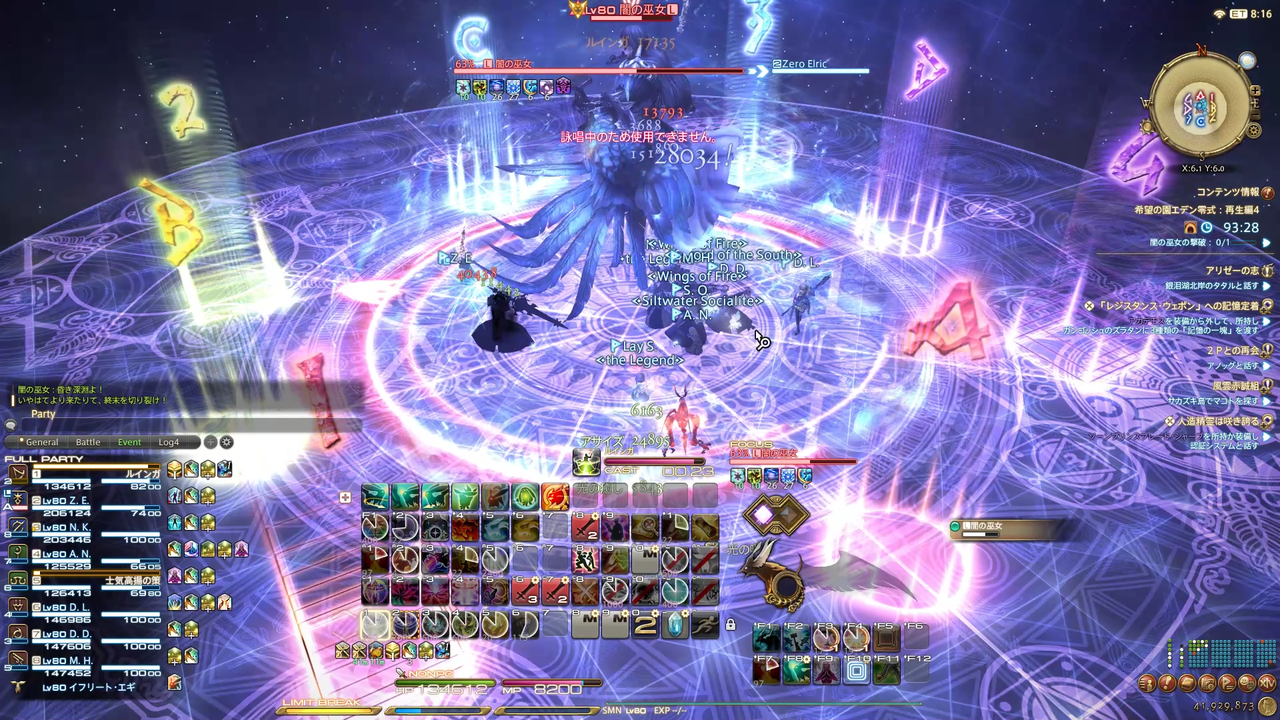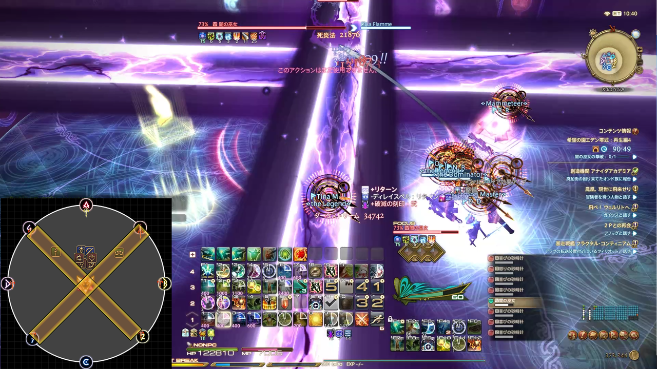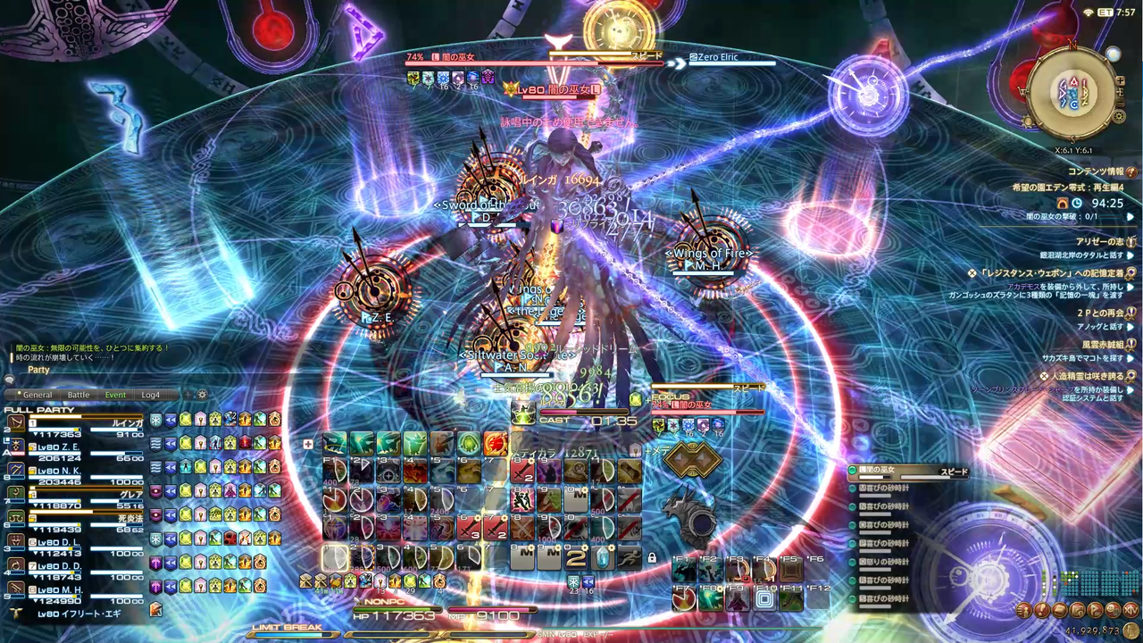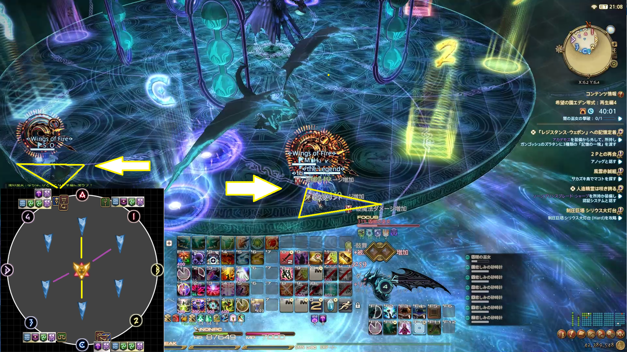 ディレイスペルが発動 エラプション→散開 ウォタガ→4:4で頭割り