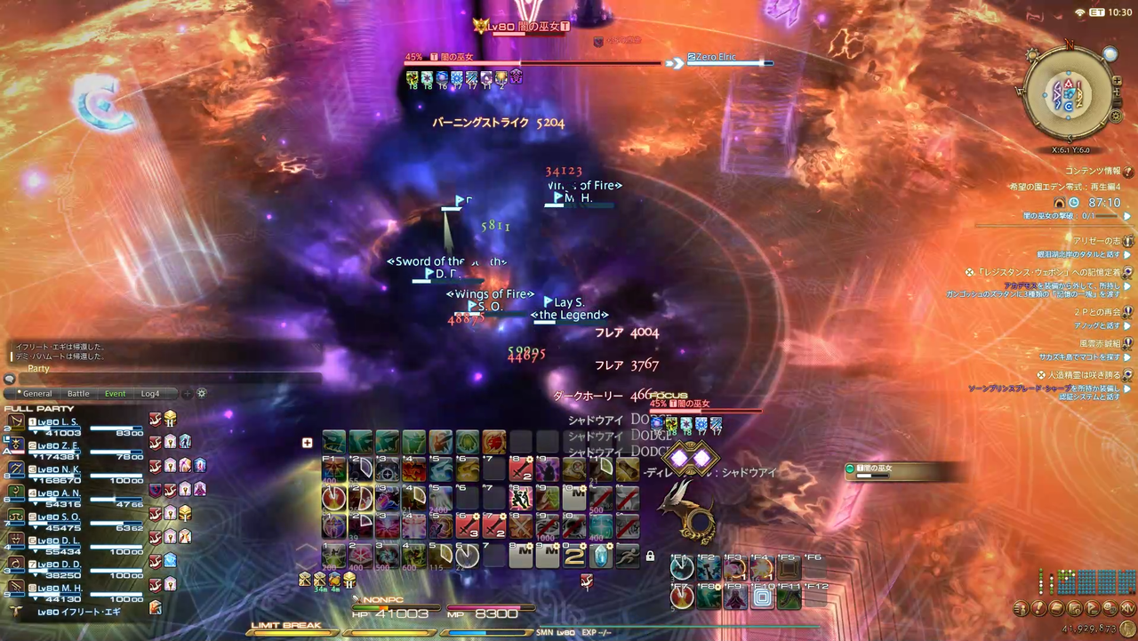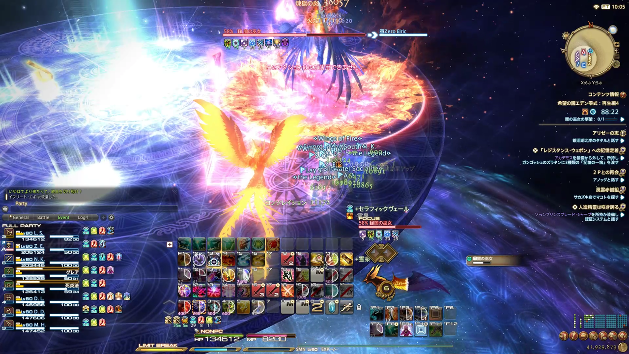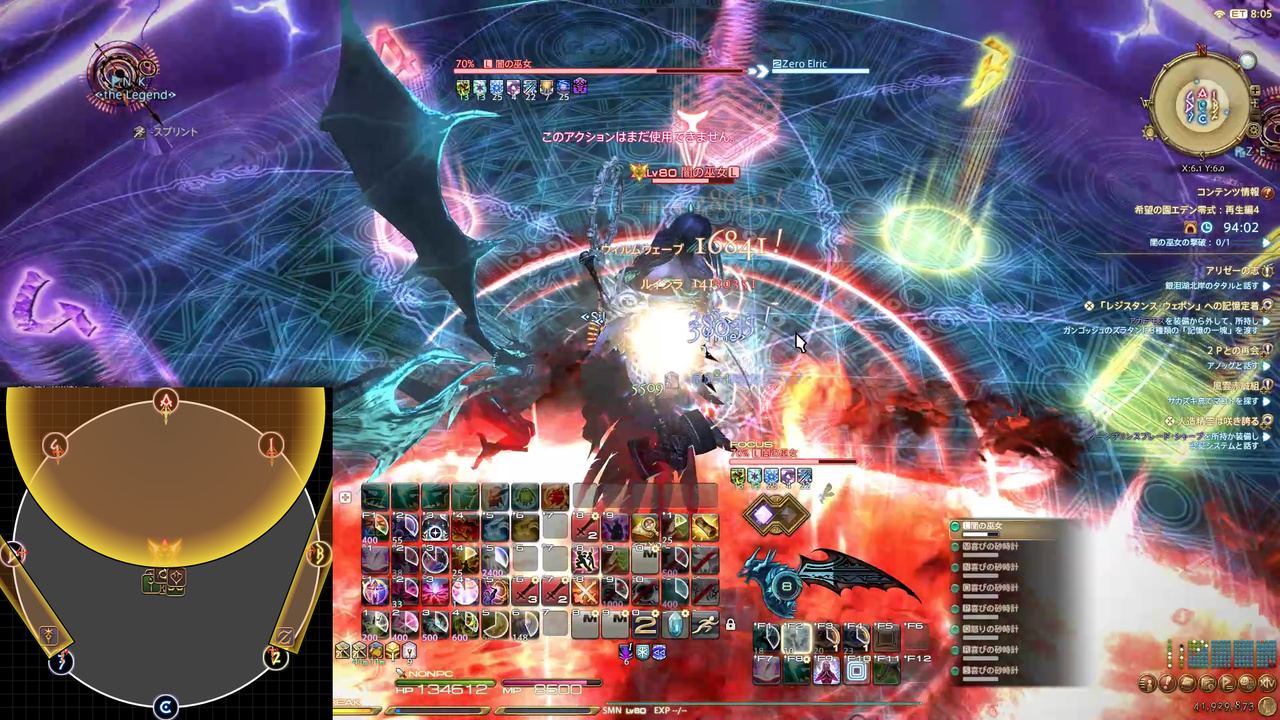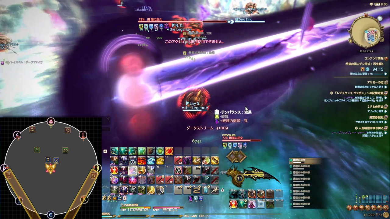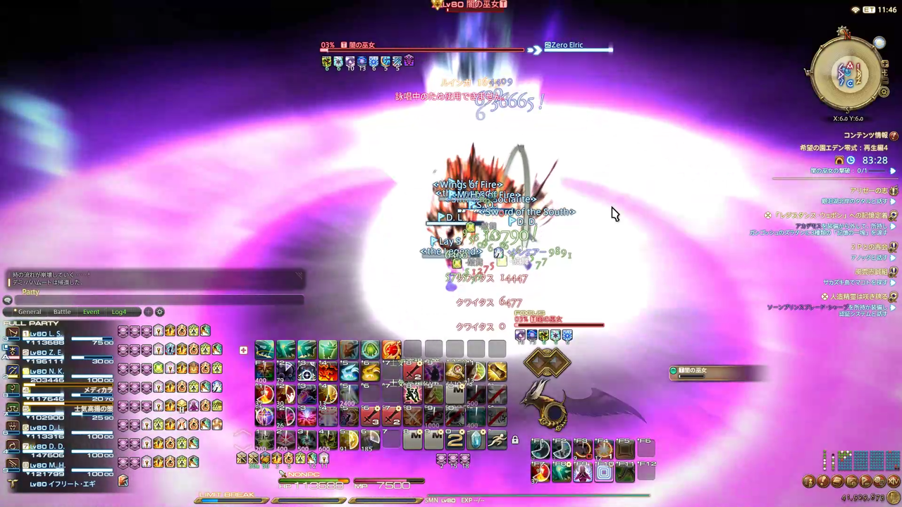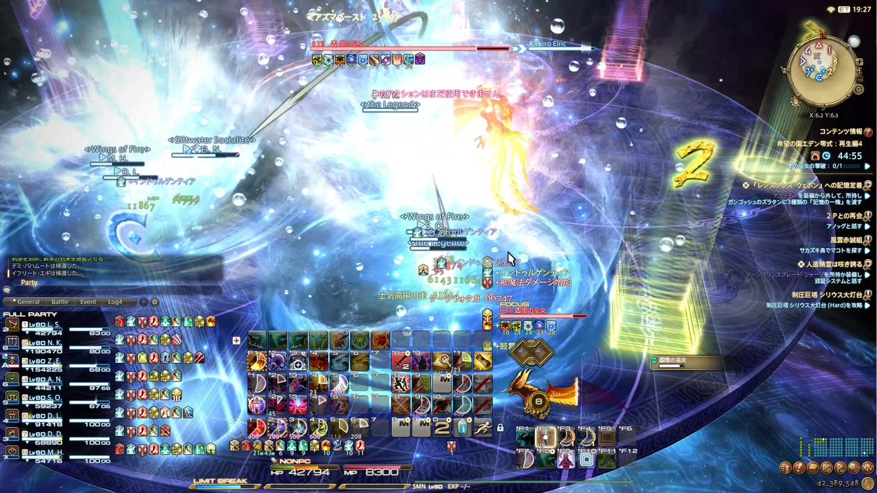 ディレイスペルが発動 エラプション→散開 ウォタガ→4:4で頭割り