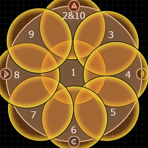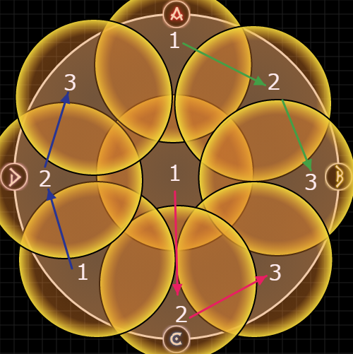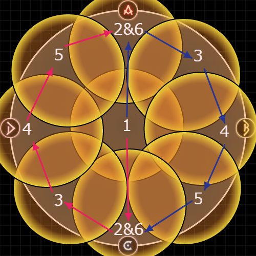 黄色は、必ず3時と9時の砂時計と結ばれ、紫色は11時&1時 or 8時&4時のどちらかと結ばれる