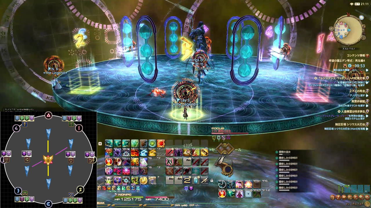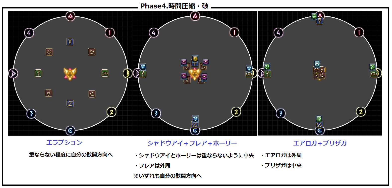 DPSのデバフは、ファイガなら6時付近に重ならないようにしてブリザガなら中央で全員固まっておく