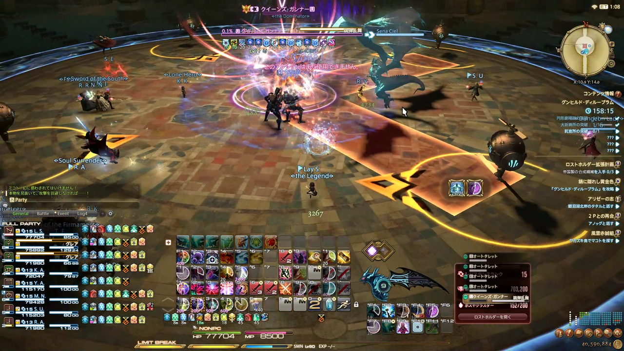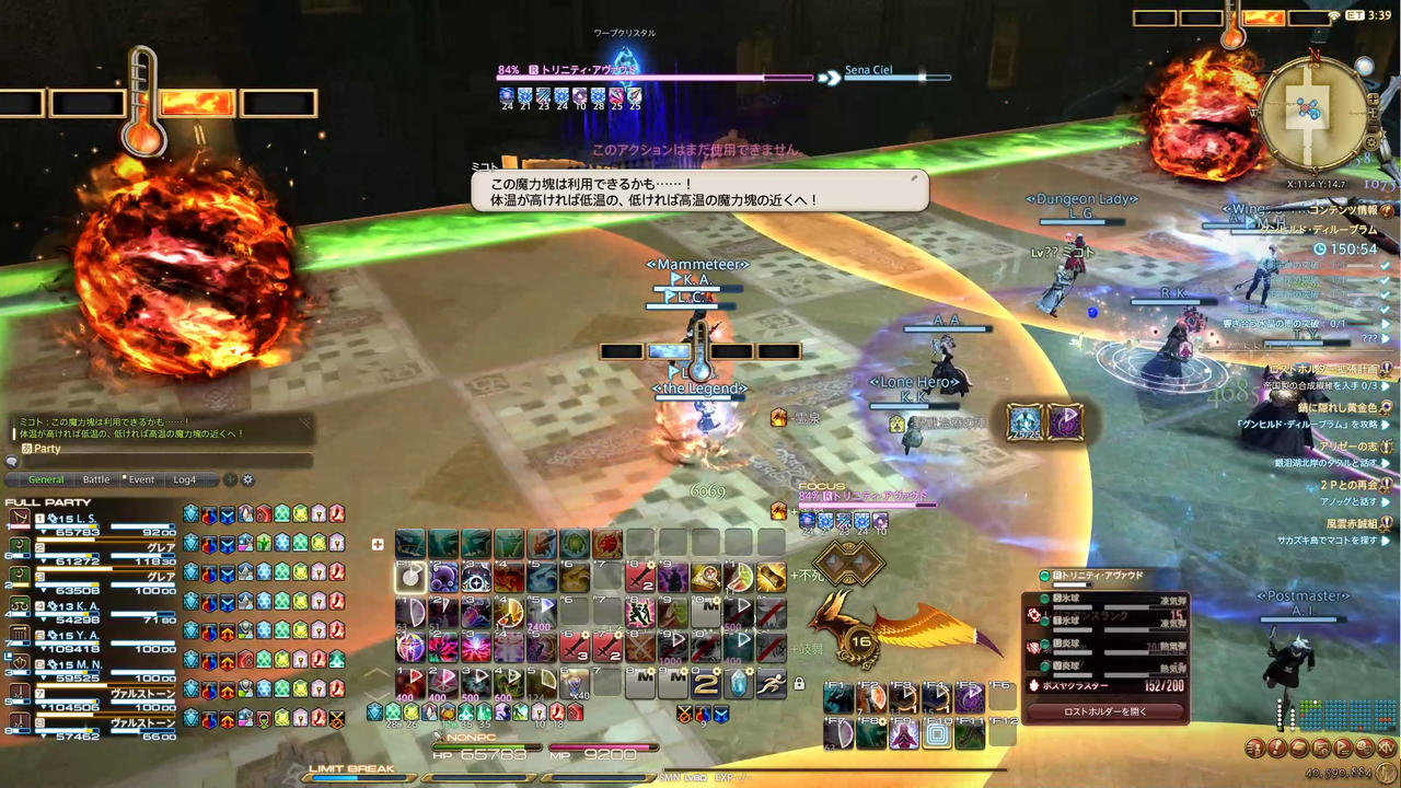 同時に全員が全体攻撃の営所を始めるのでそれまでに倒すDPSチェック