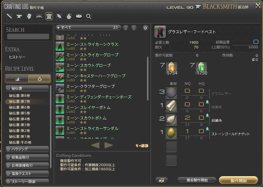 ・クラフターを1ジョブ以上90にする(禁断用)