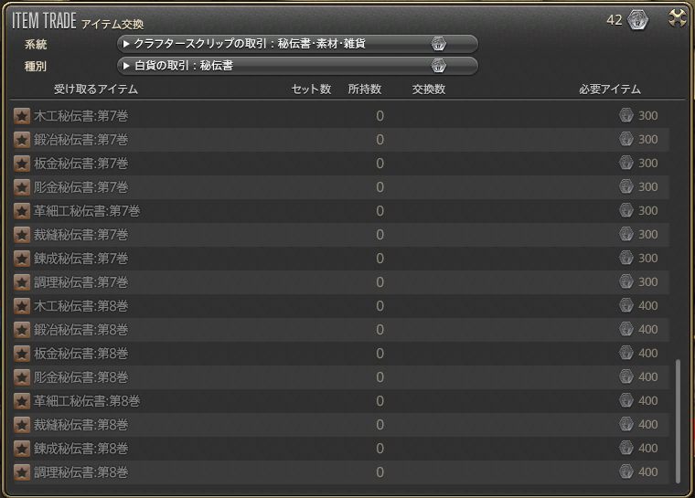 全職分集めるには9600必要になるので、実装前に2000貯めた上で収集品を7600分作っておくといいでしょう