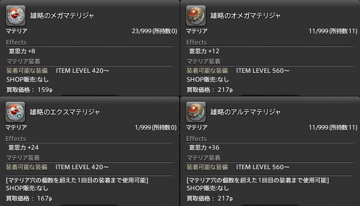 マテリアを嵌めれる装備は11箇所あるので、量が必要になるわけです